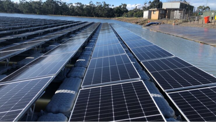 350kW floating solar system installed at the Drouin wastewater treatment plant