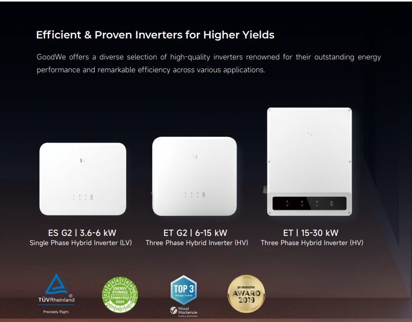 Founded in 2010, GoodWe is a globally recognised manufacturer of solar inverters and energy storage solutions. Based in Suzhou, China, GoodWe has become a leading provider of reliable and innovative solutions that enable homes and businesses to generate and store clean energy. GoodWe’s products are installed in over 100 countries, with a reputation for delivering efficiency, safety, and durability in solar energy systems.