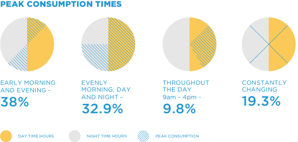 Unsurprisingly, most responders indicated that early morning and evening times were when they used their energy the most. From this, we can assume that many of you falling into this bracket are living the Australian dream of a 9-to-5 working life… which is great! Although it’s not allowing you to get the most out of your solar system.