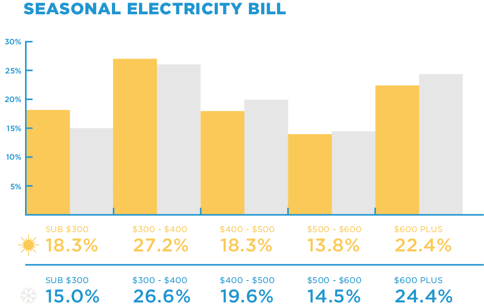 We also found that the average electricity bill does not fluctuate that much from summer to winter and vice versa. Most respondents indicated that their electricity bills stayed within the $300 to $400 mark no matter what time of year it was!